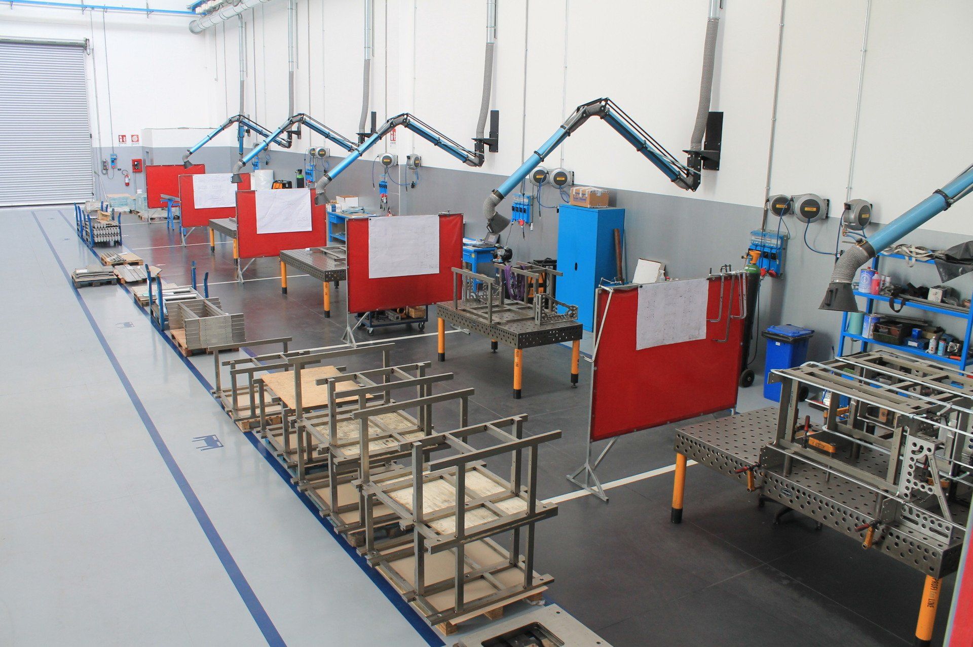 Abbiamo inoltre creato un reparto dedicato esclusivamente alla saldatura dei componenti in acciaio inox per poter garantire l’incontaminazione. Qui viene realizzata piccola componentistica (pannellature, scatolati, carterame vario) ma anche serbatoi-vasche a “tenuta liquidi” e telai di medie-grosse dimensioni.